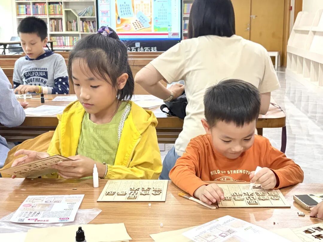 “童玩同育”以“活字印刷”为主题开展研学活动5场,带领小读者穿越千年,触摸汉字传播的文明记忆,吸引近100组亲子家庭参与。研学导师从奥运会上的活字印刷表演引入,为小读者系统讲解了活字印刷术的诞生、原理、工艺流程及其对世界文明进程的巨大贡献,将其作为“四大发明”之一的智慧娓娓道来。体验环节中,孩子们与家长默契协作,制作字模、拣字排版、均匀刷墨、覆纸印刷,利用二十余个活字字模,印刷复现经典古诗词《画》,感受汉字传播的千年智慧与文化自豪。