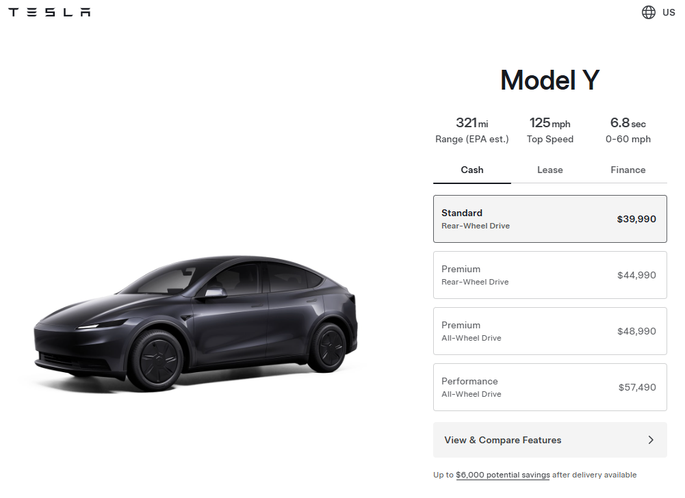 特斯拉推出售价39990美元的新版Model Y,以应对美国电动汽车补贴取消带来的影响。